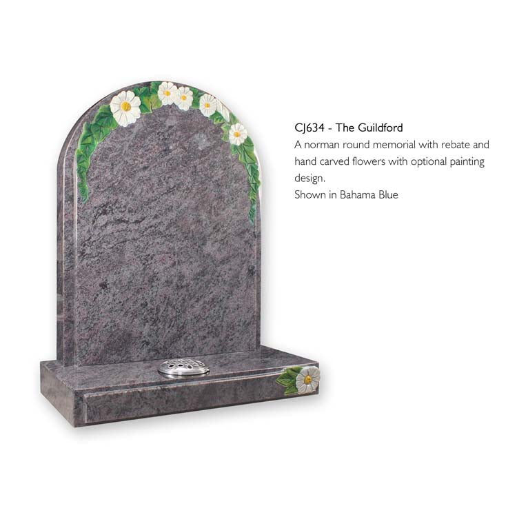 A norman round memorial with rebate and hand carved flowers with optional painting design.