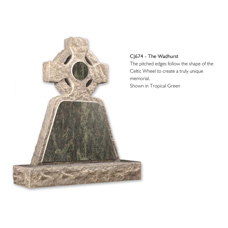 The pitched edges follow the shape of the Celtic Wheel to create a truly unique memorial. Shown in Tropical Green.