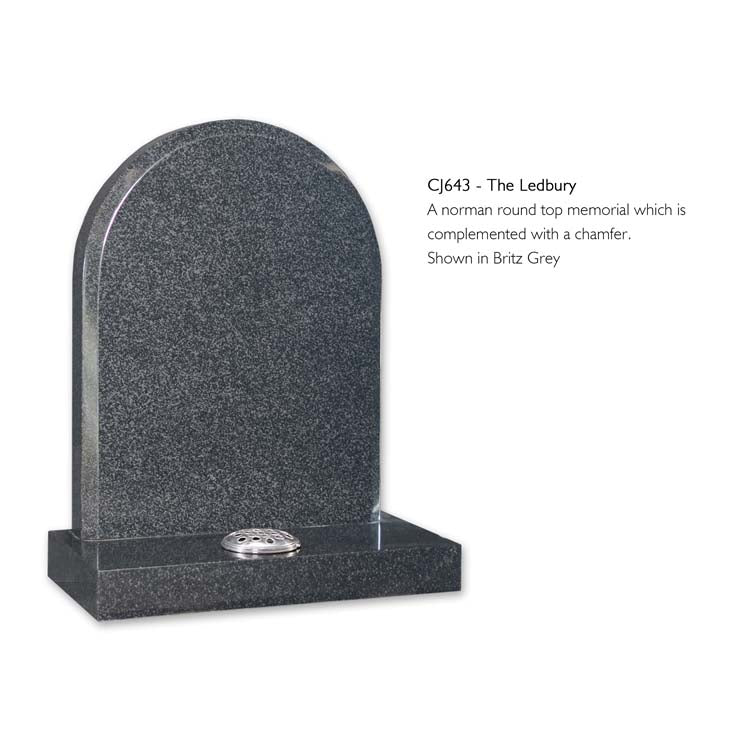 A norman round top memorial which is complemented with a chamfer. Shown in Britz Grey.
