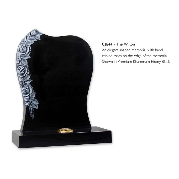 An elegant shaped memorial with hand carved roses on the edge of the memorial.