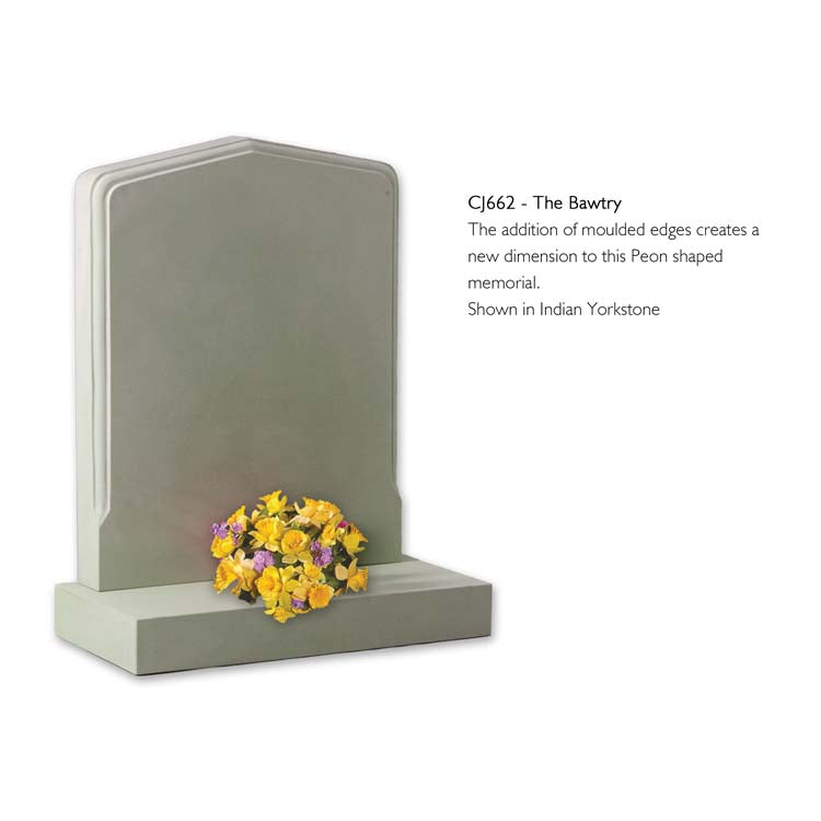 The addition of moulded edges creates a new dimension to this Peon shaped memorial. Shown in Indian Yorkstone.