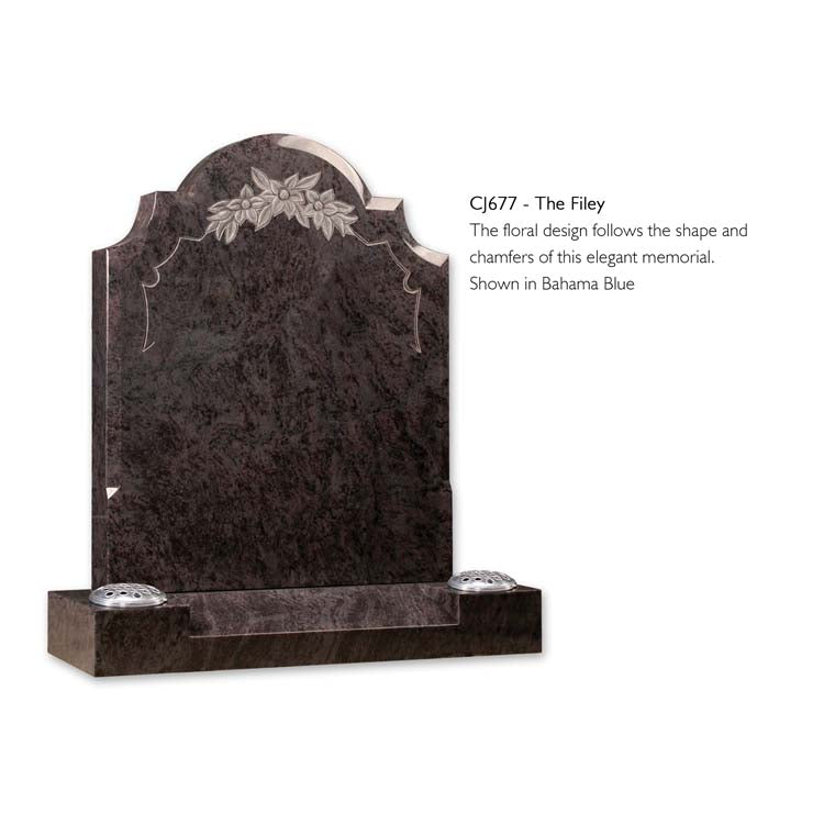 The floral design follows the shape and chamfers of this elegant memorial. Shown in Bahama Blue.