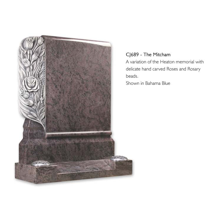 A variation of the Heaton memorial with delicate hand carved Roses and Rosary beads.