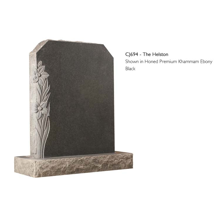 All of our memorials are hand carved with skill and care. The daffodil carvings are shown in natural finish on The Helston but can also be painted as seen on The Sutton.