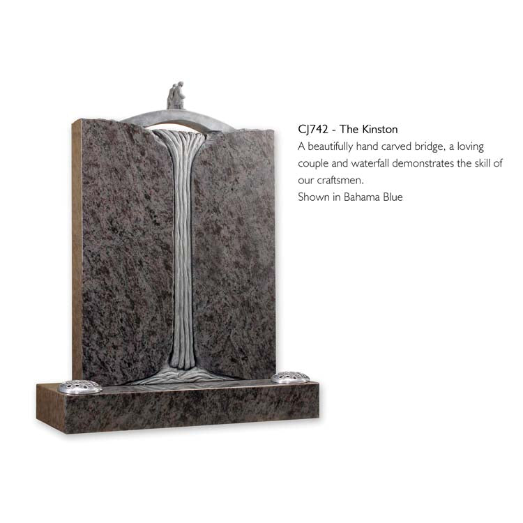 A beautifully hand carved bridge, a Loving Couple and waterfall demonstrates the skill of our craftsmen. Shown in Bahama Blue.