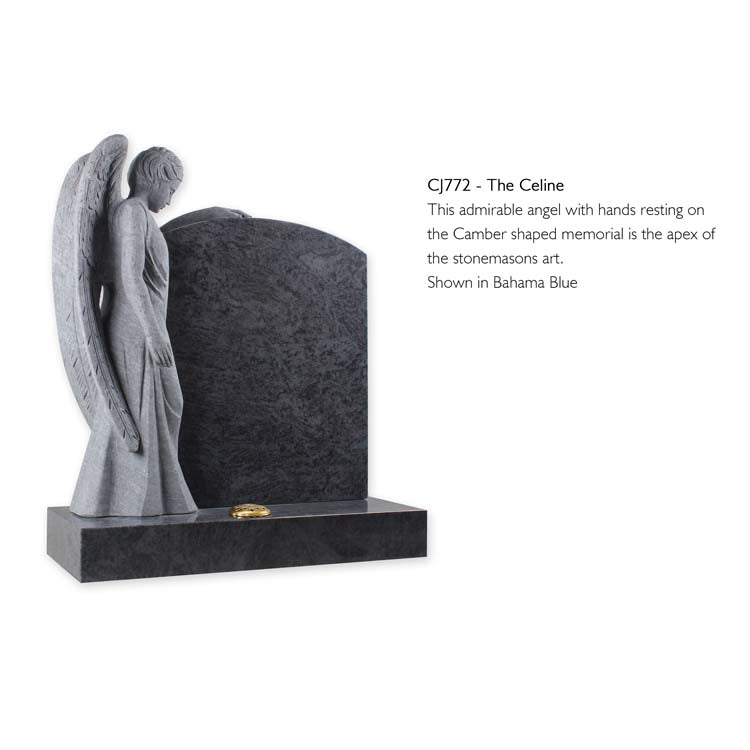 This admirable angel with hands resting on the Camber shaped memorial is the apex of the stonemasons art. Shown in Bahama Blue.